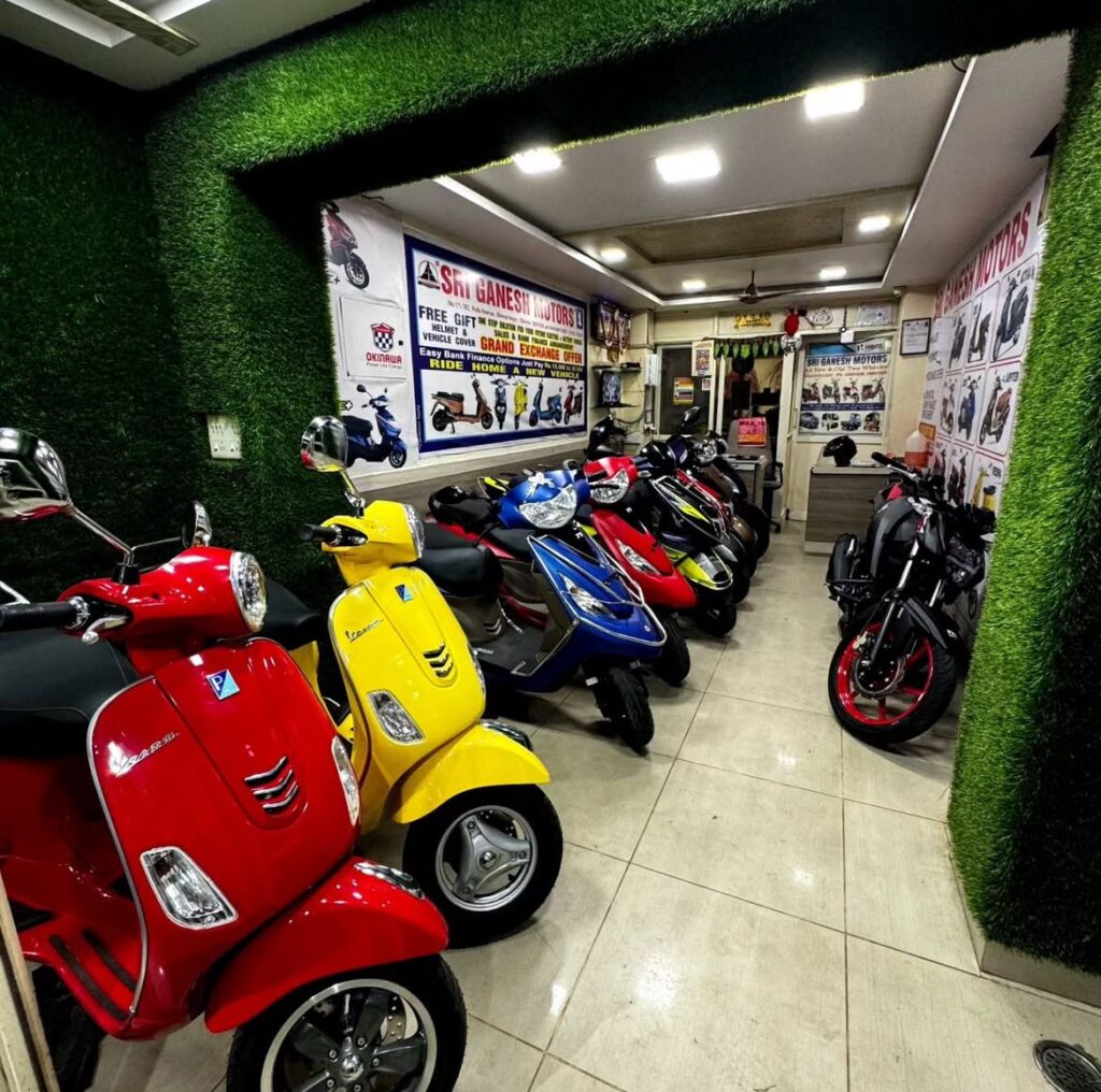 A multibrand two wheeler showroom like Sri Ganesh Motors sells bikes and scooters from many popular brands such as Hero, Honda, TVS, Suzuki, and more. You can find all brands in one place, compare models, and choose the best bike that fits your needs and budget.